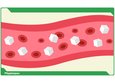 Der Zucker bleibt im Blut, der Blutzuckerspiegel ist dauerhaft erhöht – das belastet Gefäße, Nerven, Herz, Augen und Nieren.