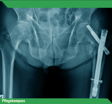 Menschen mit Pflegebedarf haben ein zehnfach höheres Risiko für Hüftfrakturen als Gleichaltrige ohne Pflegebedarf.